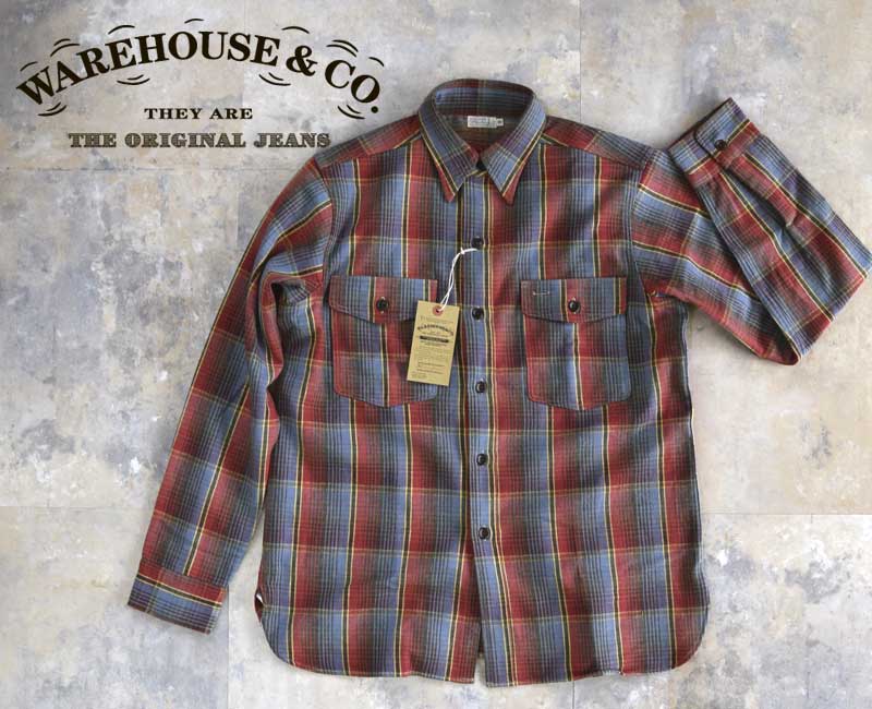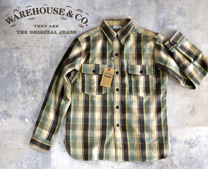 WH3022 :WAREHOUSE ウエアハウス LOT 3022 FLANNEL SHIRTS WITH CHINSTRAP G柄 ONE WASH