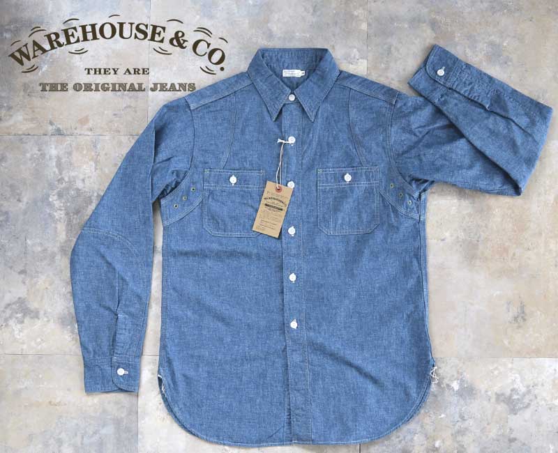 WH-3064 :WAREHOUSE ウエアハウス VENTILATION TRIPLE STITCH CHAMBRAY SHIRTS Lot 3064