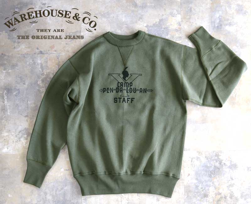 WH-401-CAMPPENDALOUAN :WAREHOUSE ウエアハウススウェット セットインスリーブ Lot 401【CAMP PENDALOUAN】O.D GREEN