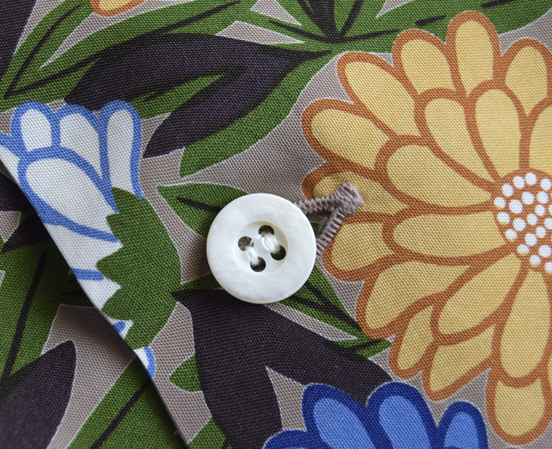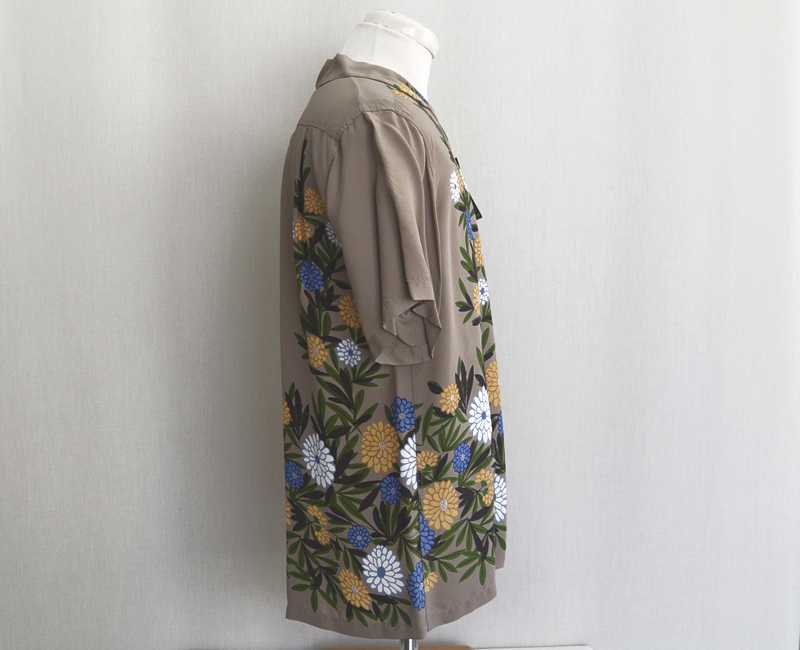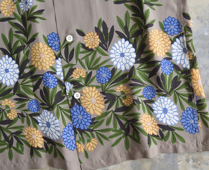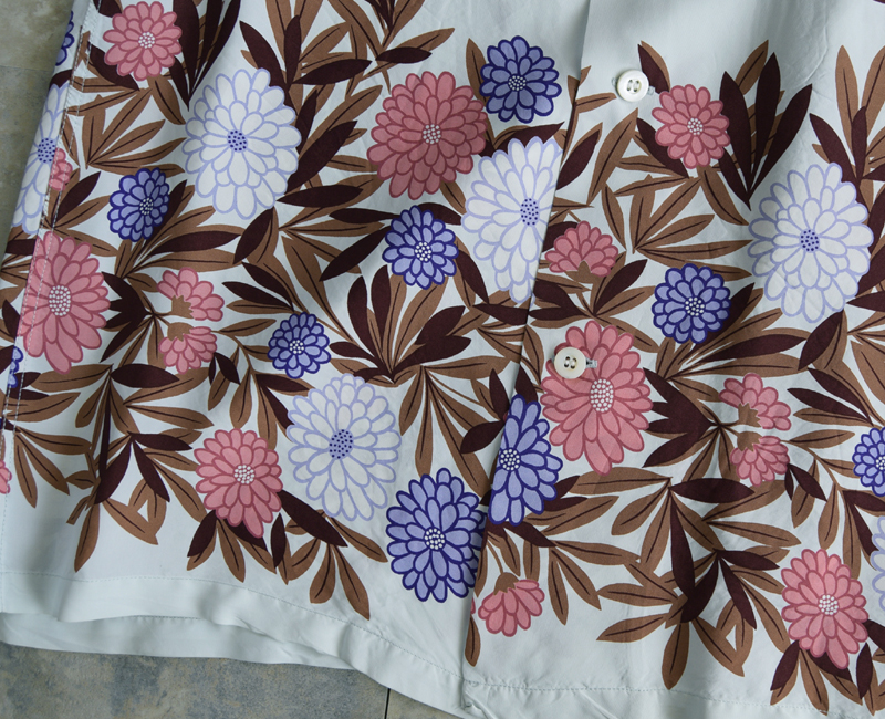 東洋エンタープライズのサンサーフ[SUNSURF]からお届けするこの作品は、特徴のあるホリゾンタル・パターンでデザインされたこのシャツは、シスコ社時代のディーク・ハナモクの作品。小菊がモチーフのこの柄は、どことなく和風な味わいのする商品です。可愛らしさもありカッコよさもあります。素材:フィラメントレーヨン ボタン:貝ボタン