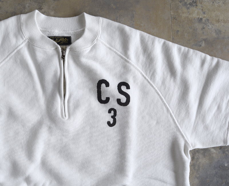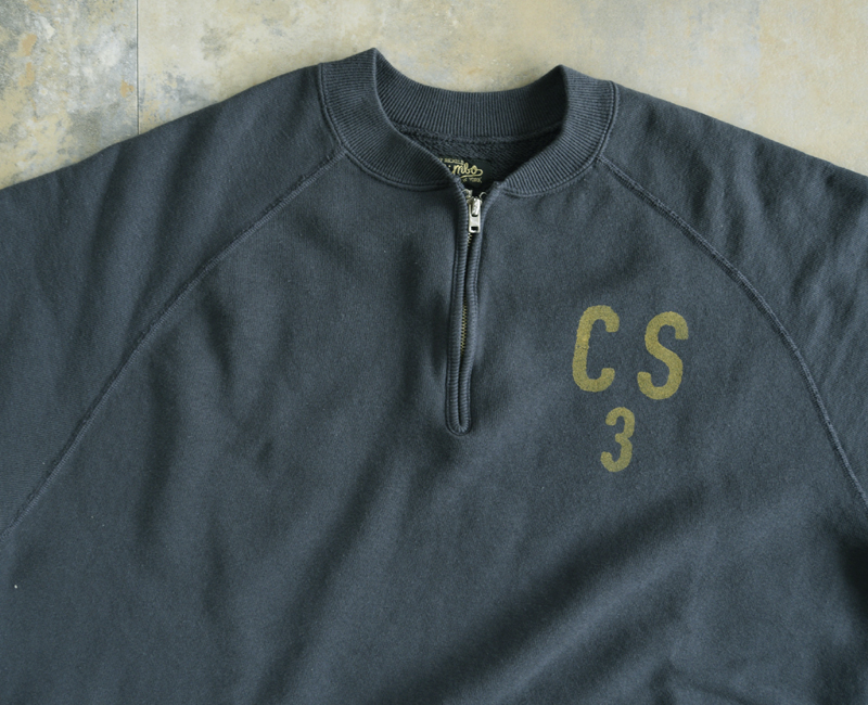 18BD吊り裏毛(12オンス)の吊り編み裏毛を使用した60年代ハーフジップスエットです。