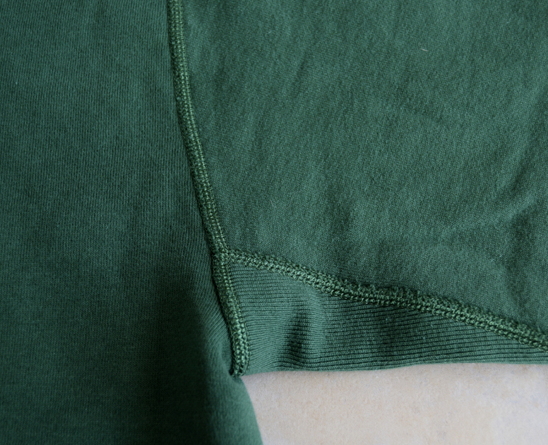 旧式の吊り編み機で丁寧に編み上げた、脇に縫い目のない“丸胴”ボディ。さらに、着心地を損なわないフラットシーマ縫製を採用しています。ストレスのない柔らかな着用感は、一度袖を通せば虜になること間違いありません。