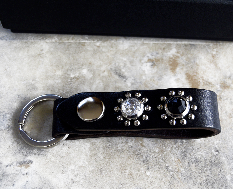 ZA-0707 :COLIMBO/コリンボ JEWEL STUDDED LEATHER KEY RING -Sunflower Pattern-