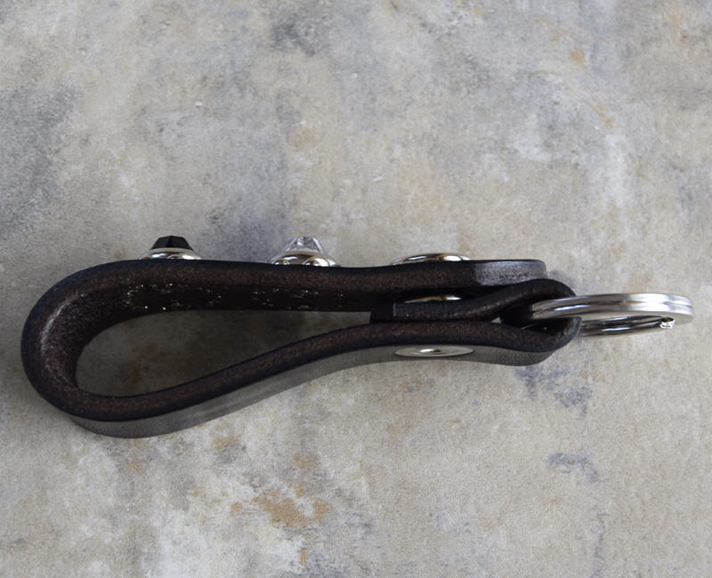 コリンボよりベルト同様の4mm厚ベンズレザーを使用しThe Standard Rivet Companyのスタッズを使用したキーリング。