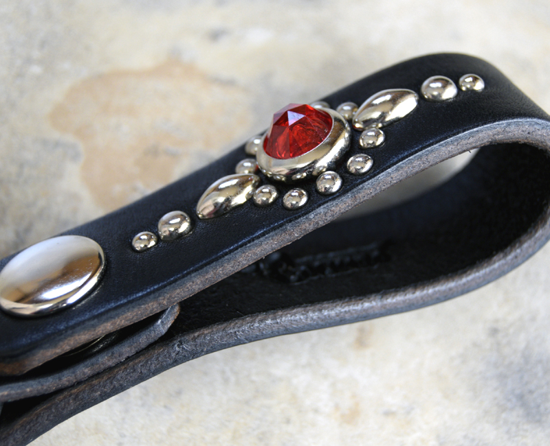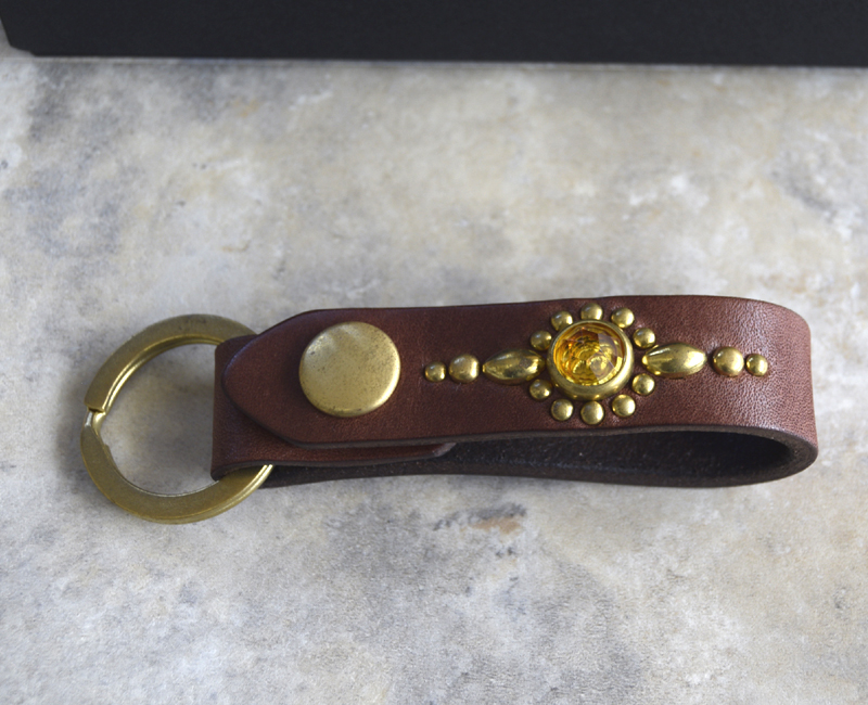 コリンボよりベルト同様の4mm厚ベンズレザーを使用しThe Standard Rivet Companyのスタッズを使用したキーリング。