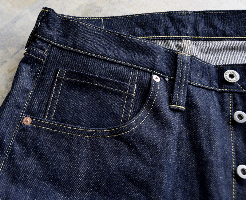 また、色落ちはウエアハウスらしく大戦モデルと同じように、少し濃いめでのコントラストがある、色落ち感が楽しめる商品だと思います。