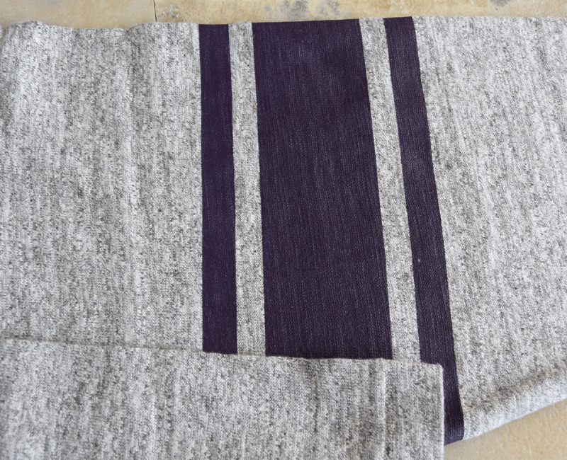12番のムラ糸で独特の陰影が出るように編まれたこの生地はシャドウボーダーと呼ばれており、無地でありながらうっすらと横段のようなムラが浮かびます。