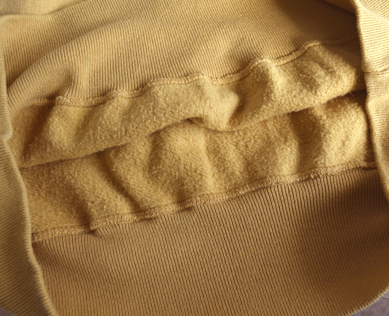 洗濯と乾燥を繰り返すことで変化が生まれた裏起毛、そして褪色でしか表現できないような絶妙なフェードカラーは、「新品の状態で古着の風合い」という「セコハン」そのものです