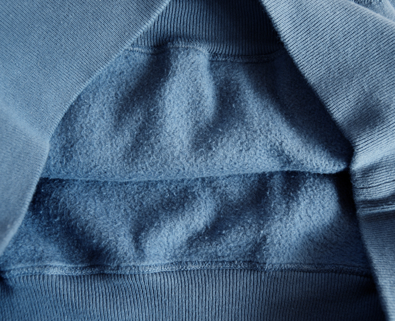 着古されたヴィンテージスウェットを徹底的に研究して再現されたセカンドハンドシリーズのスウェットシャツです。洗濯と乾燥を繰り返すことで変化が生まれた裏起毛、そして褪色でしか表現できないような絶妙なフェードカラーは、「新品の状態で古着の風合い」という「セコハン」そのものです。