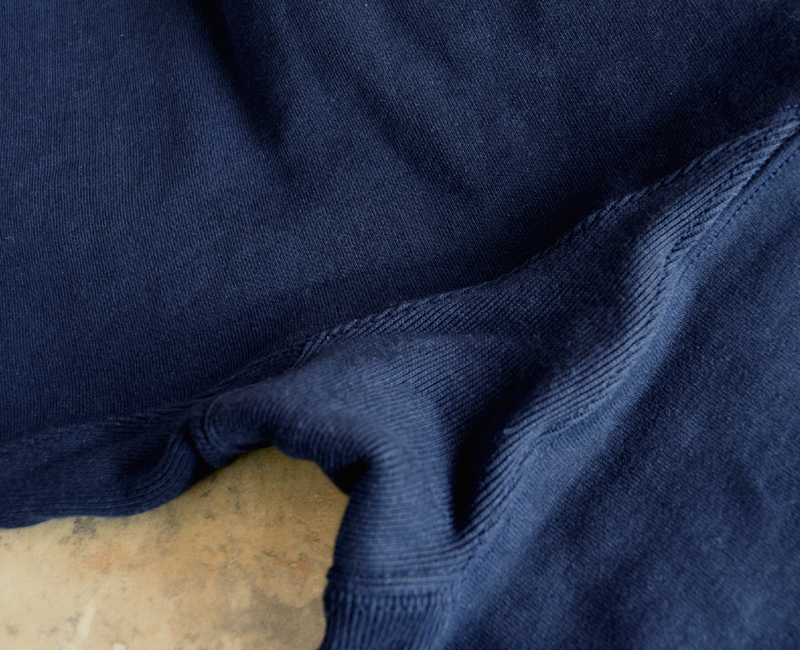 生地をウールを編むような作り方で作っていた時代の稀少なスウェット。鹿の子を吊り編みで機で製造したあと、裏起毛をかけているというもので、さらには反染めと呼ばれる、生地の段階で染めるのではなく糸を染めてから生地を編むため、表面に独特のちらつきが見え、独特のムラ感が魅力になります。先染のグレーやオートミールと同じ製法で作られた、希少な1930年代の杢のスウェットです。