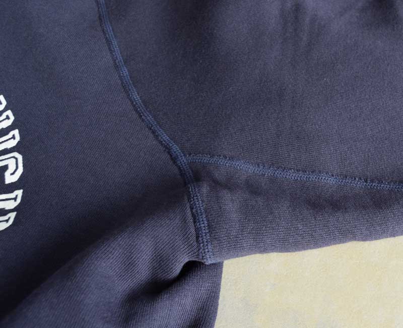 1950年代にはスポーツウェアとしてのスウエットシャツがラグランスリーブになり、ガゼットの補強がなくなったシンプルモデルが誕生しました。ラグランスリーブのステッチが効いたオーセンティックなスウエットです。