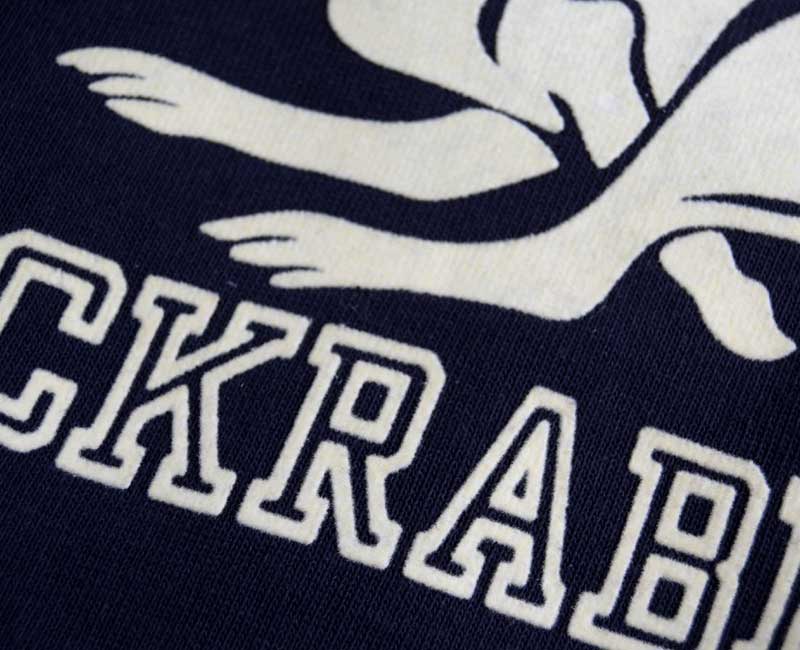 1950年代にはスポーツウェアとしてのスウエットシャツがラグランスリーブになり、ガゼットの補強がなくなったシンプルモデルが誕生しました。ラグランスリーブのステッチが効いたオーセンティックなスウエットです。