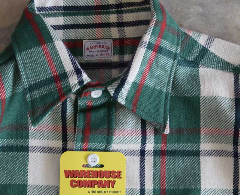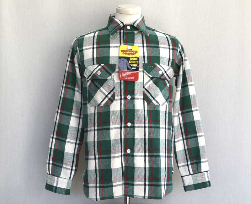 WH3104 :WAREHOUSE ウエアハウス FLANNEL SHIRTS C柄 / GREEN ネルシャツ