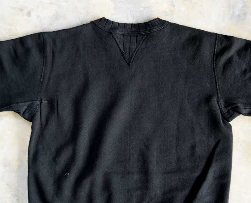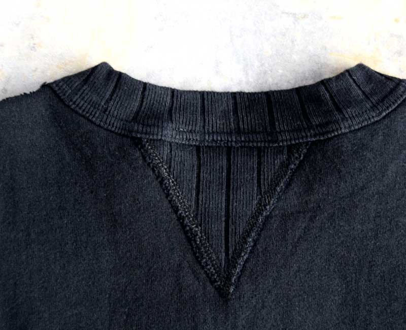 丸胴ボディに両Vガゼットを備えた、クラシックな佇まいの針抜きスウェット。
