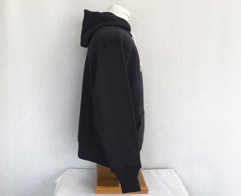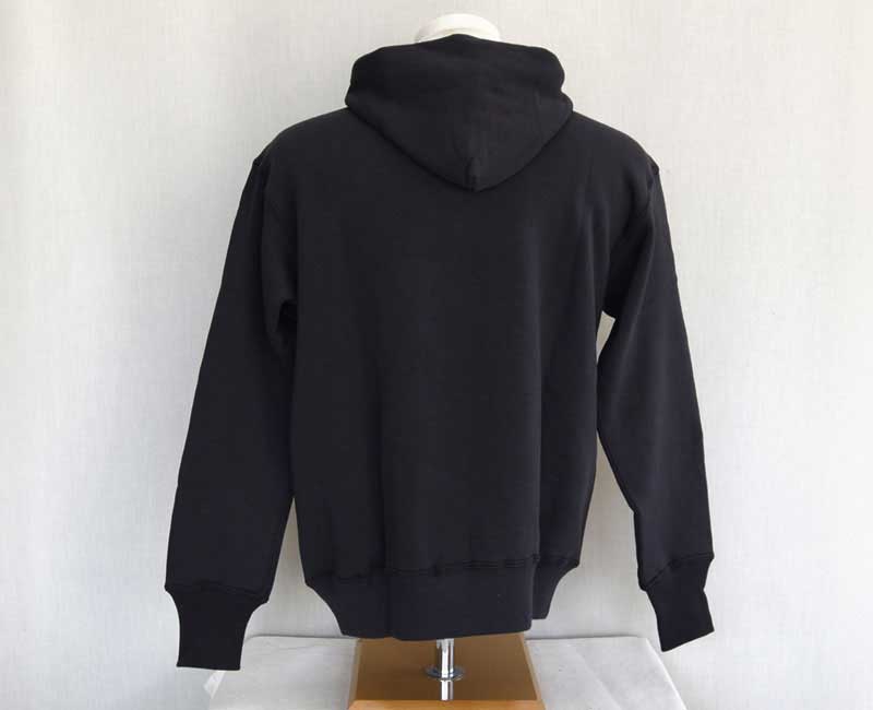 セットインスリーブの二本針タイプのフード付きモデルです。不変的な定番デザインながら、フード裏、ポケット口には特徴的なフライスリブを使用しているため、フードはさらにフィット感を高め、フロントポケットはアクセントだけでなく、補強の役割も果たしています。