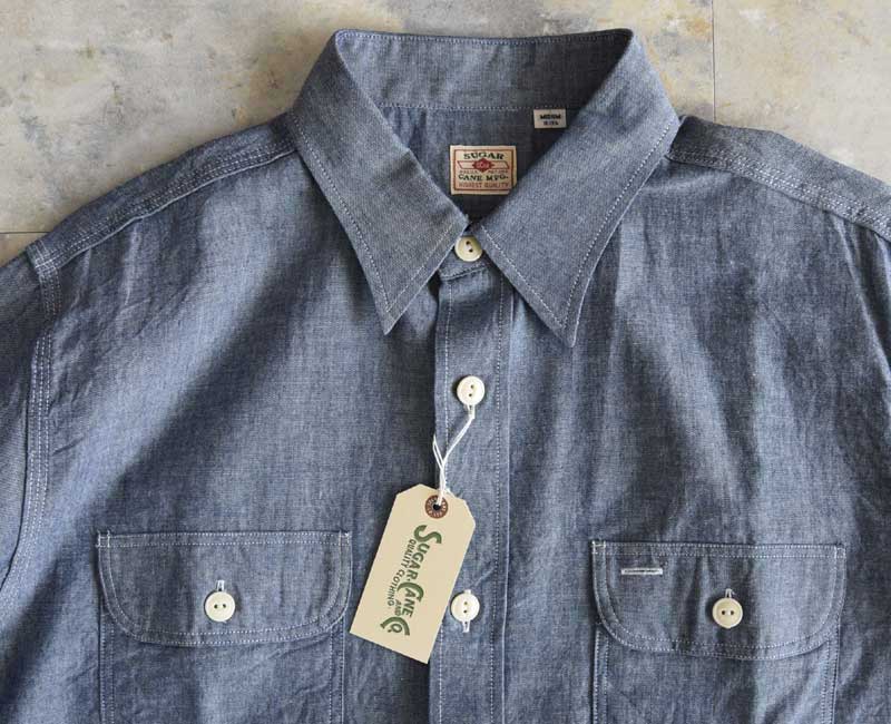 SC27850 :SUGAR CANE (シュガーケーン) BLUE CHAMBRAY WORK SHIRT (LONG SLEEVE) Lot No. SC27850