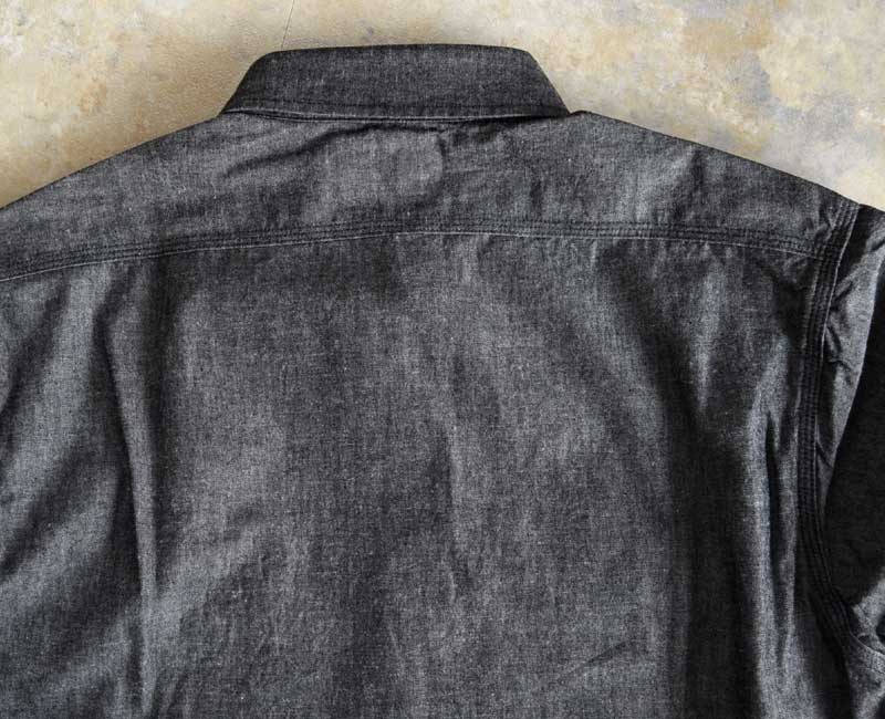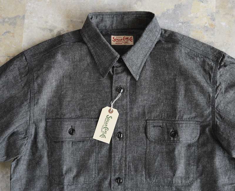 シュガーケーンの定番アイテムとして長年継続してリリースしている「Lot No. SC27850」をブランド初となるブラックシャンブレーで製作。]