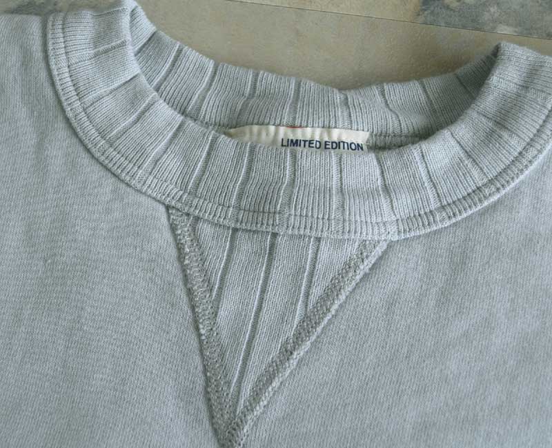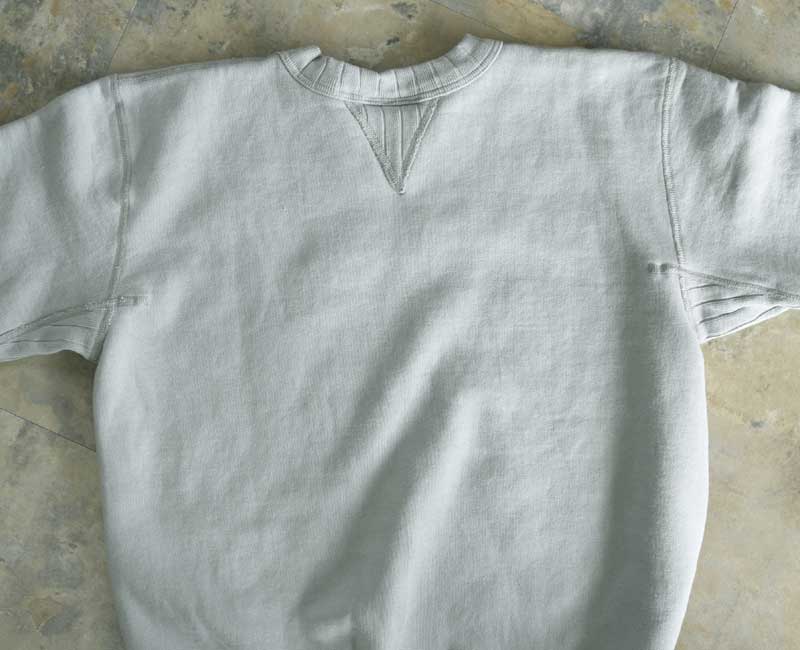 丸胴ボディに両Vガゼットを備えた、クラシックな佇まいの針抜きスウェット。