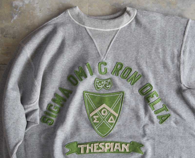 20年以上仕様を変更していない定番の吊り編みスウェットです。二本ステッチの間から粗めのロック糸が見える仕様はヴィンテージでしか見られないディテールですが、ミシンを改良することで実現させました。かつてコットンフリースラインドと呼ばれた裏起毛も、筒状のまま起毛をかけて再現しています。