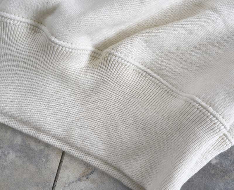 縫製は2本針仕様で仕上げられ、ヴィンテージスウェットのような雰囲気。