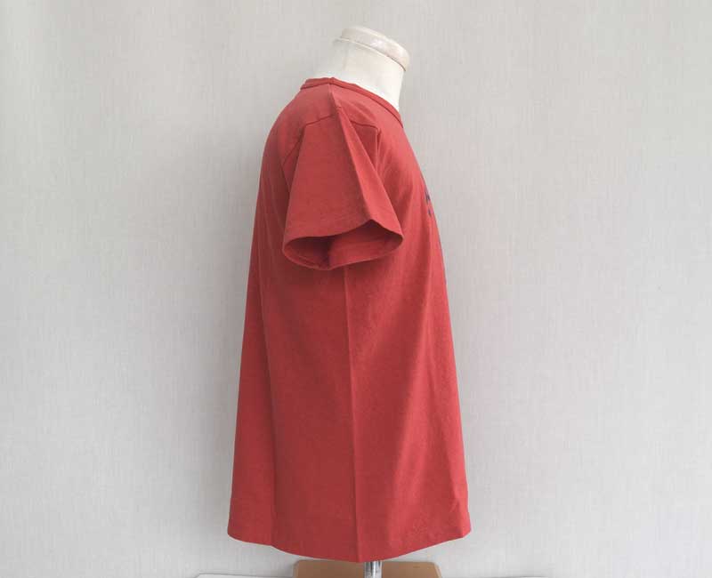 NON WASHである4601シリーズとは対照的に、中古感を徹底的に再現したセコハンシリーズのTシャツとして生まれた4064モデルです。適度に緩んだネックライン、ボディのフェード感や、プリントの褪色、掠れ、起毛感など、何年も着こまれ、洗いこまれた古着のTシャツをイメージして製作しています。