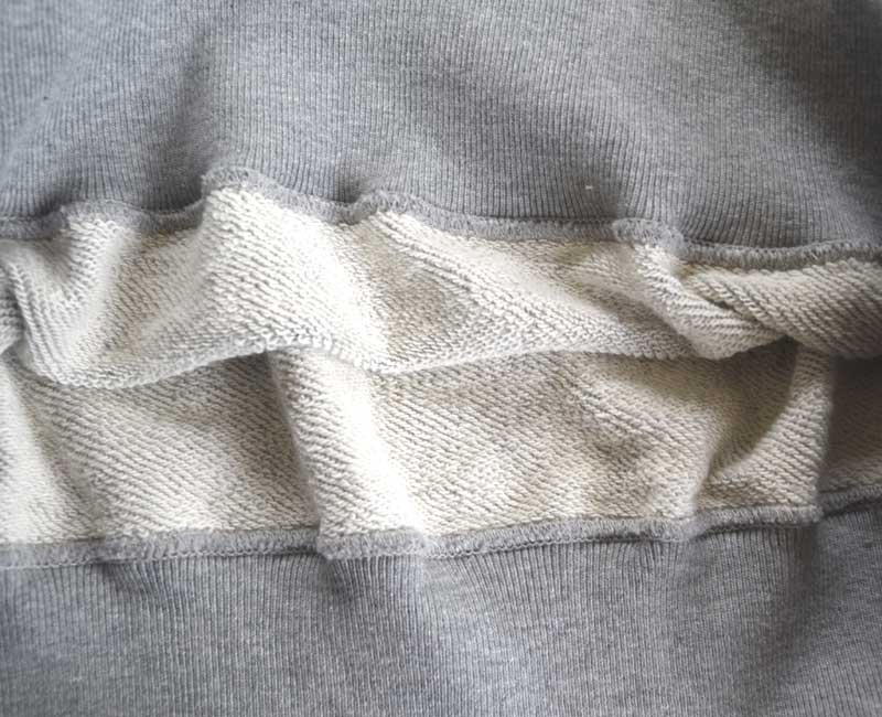ここはあえて、Vガゼット、丸胴吊り編みにて制作しております。
