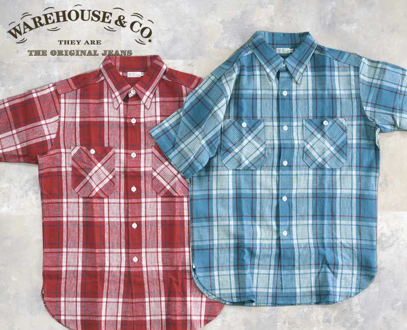 WH-3056 :WAREHOUSE ウエアハウス SHORT SLEEVE CHECK WORK SHIRTS B柄(マドラス) Lot 3056 半袖シャツ