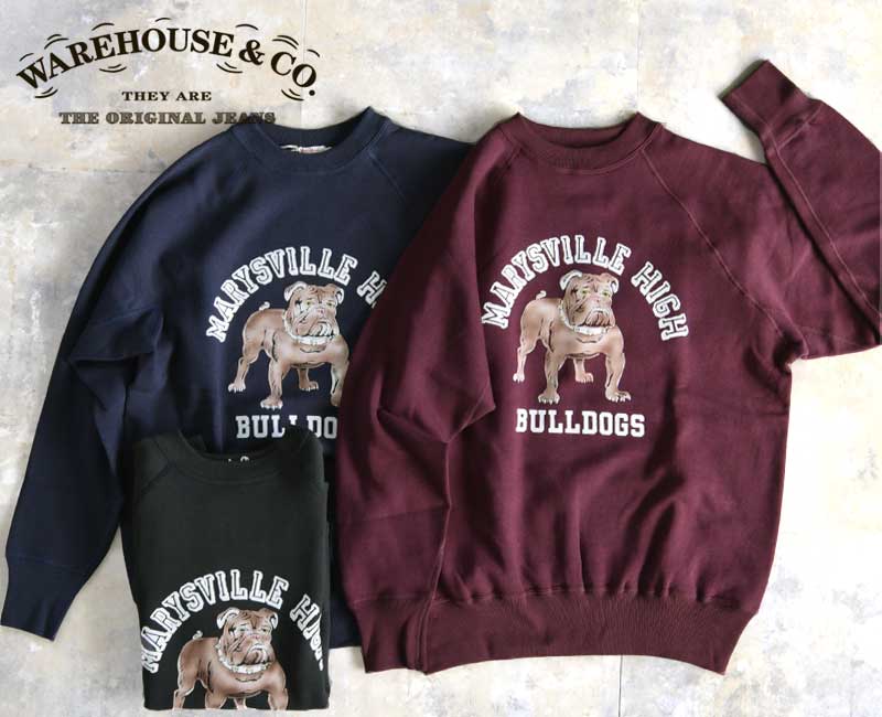 WH-409-MARYSVILLE :WAREHOUSE ウエアハウス スウェットLot-409 ラグランスリーブ MARYSVILLE HIGH【ブルドッグス】