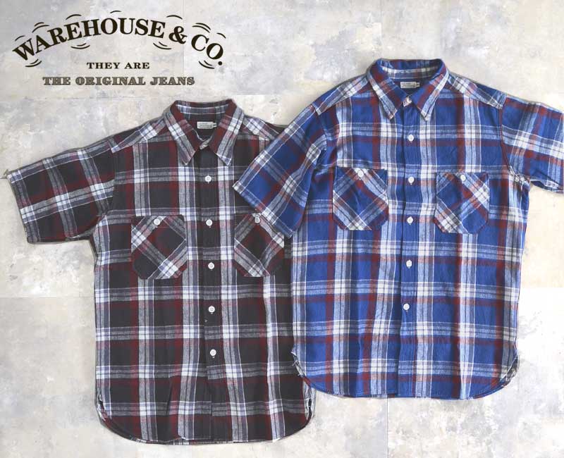 WH-3056 :WAREHOUSE ウエアハウス SHORT SLEEVE CHECK WORK SHIRTS B柄(マドラス) Lot 3056 半袖シャツ