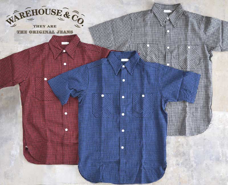WH-3056 :WAREHOUSE ウエアハウス SHORT SLEEVE CHECK WORK SHIRTS A2柄(ギンガムチェック)Lot 3056 半袖シャツ