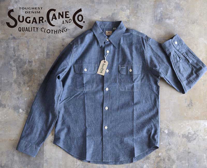 SC27850 :SUGAR CANE (シュガーケーン) BLUE CHAMBRAY WORK SHIRT (LONG SLEEVE) Lot No. SC27850