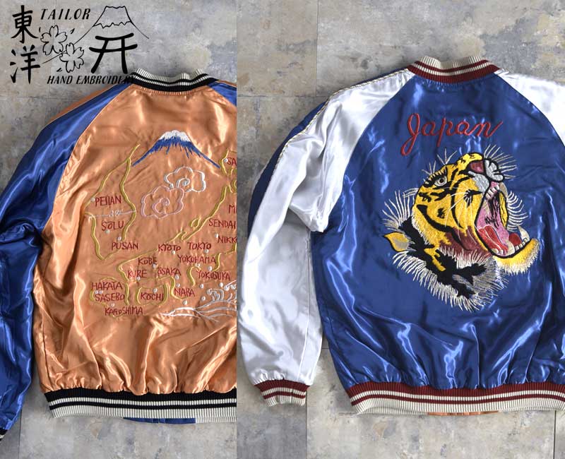 TT15877-125 :TAILOR TOYO 東洋 / Mid 1950s Style Acetate Souvenir Jacket “TIGER HEAD” × “JAPAN MAP” Lot No. TT15877-125