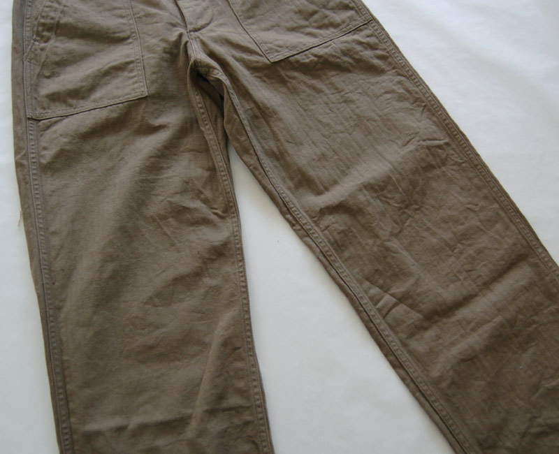 古い時代からミリタリーパンツとして採用されていたヘリンボーンを使用したベーカータイプは、サテンクロスとは違った重厚感を持っている。股上や裾幅はオリジナルのシルエットよりややアップデイトしている。