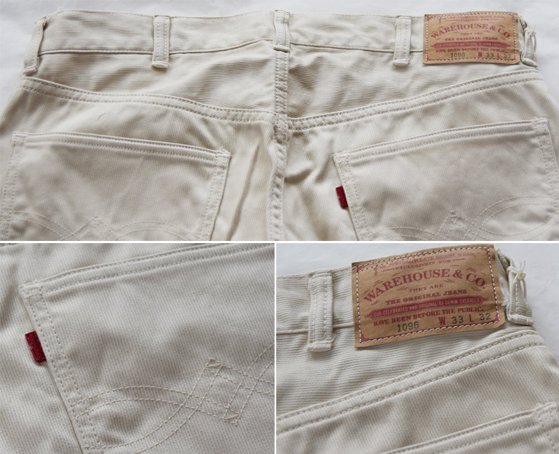 WH-1096-Ivory :WAREHOUSE ウエアハウス ジーンズ 1096 PIQUE PANTS(アイボリー)