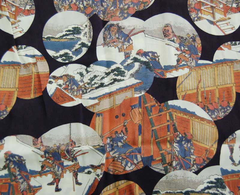 「吉良邸討ち入りの際、吉良上野介を守って討死した小林平八郎は自分の曽祖父である」と北斎は語り、忠臣蔵を好んで描いたとされています。
