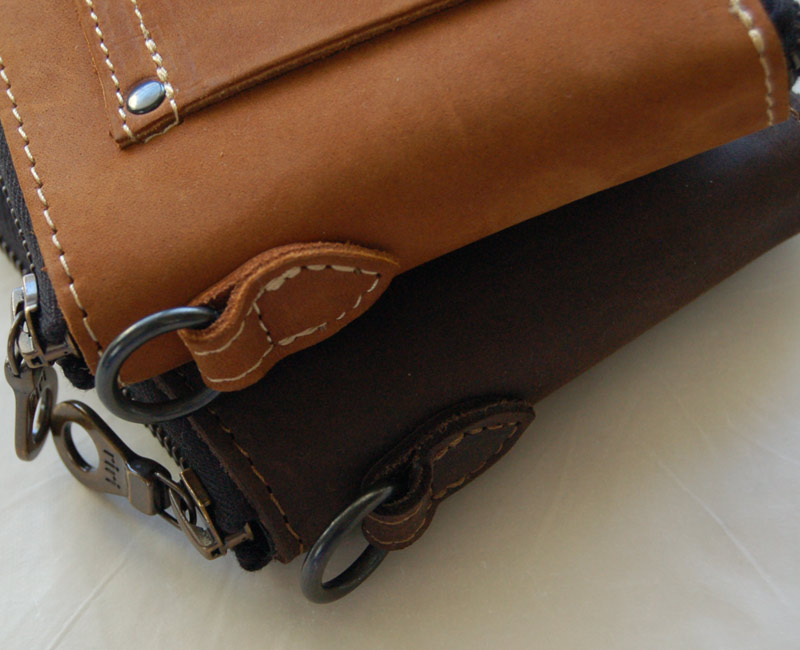 ライニングには上質な黒ヌメ革、ファスナーはスイスRiRi社製。