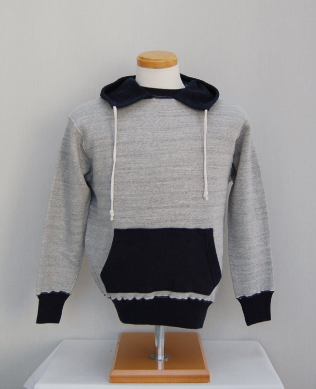 DW-88004_H.Gray/Navy :DUBBLE WORKS ダブルワークス スウェット 後付け 2TONE TSURIAMI HOODIE(杢グレー/ネイビー)