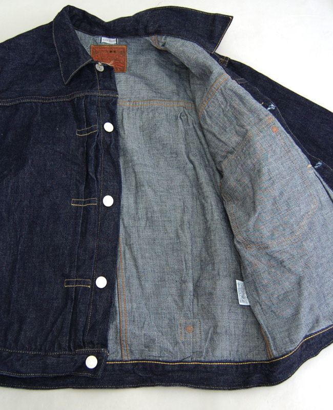 スプリットバック(Tバック)と呼ばれる希少なファーストモデルのデニムジャケットをモチーフにしています。最大の特徴は、特大サイズにのみ採用されるT字縫製のディテールをすべてのサイズに採用している部分です。
