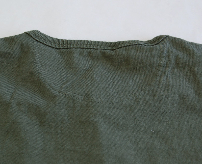 一枚で着用できる丁度良い肉厚になり、コットンの風合いを生かした柔らかい着心地。細い襟リブや前タテ周りの布帛使い、袖に使用した横リブ(良くポロシャツの襟などに使用されている。)などディテールに特徴を持たせ、ちょっと今までとはちがうヘンリーTEEに仕上がっております。