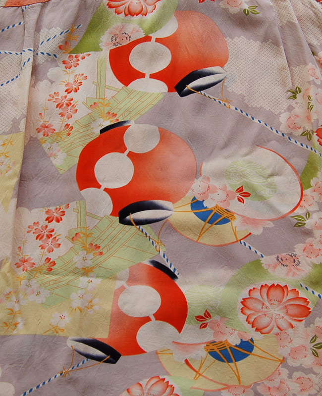1940年代の中頃、京都にアロハシャツの生地をプリントする工場、アロハ貿易が設立。またハワイでは商社「ヴィクトリー・インポート」が立ち上げられ、プリント生地を日本からハワイへ輸出するルートが確立した。この作品も同ブランドが日本でプリントを手がけ、ハワイで販売していたもので、祭りの夜に連なって飾られる提灯がメインモチーフ