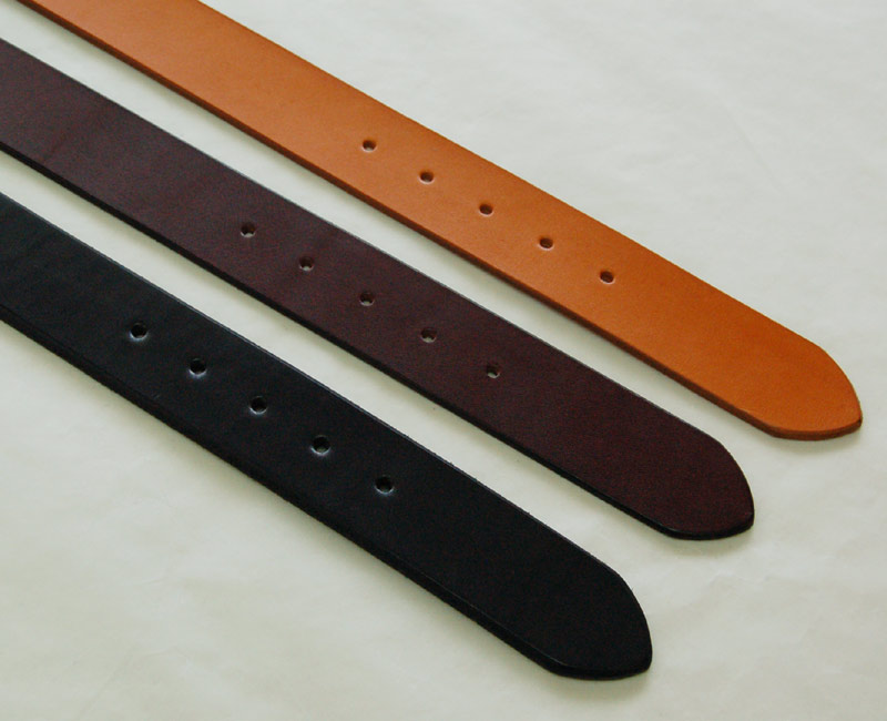 約39mm幅、厚み約4mmのしっかりとしたレザーに、鉄製バックルを組み合わせたシンプルなデザインです。