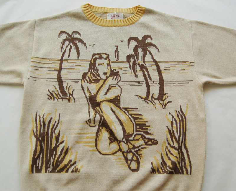 SH90219-155 :SunSurf サンサーフ【STAR OF HOLLYWOODSH】SH90219-155 JACQUARD KNIT CAERW NECK SHIRT”BEACH GIRL” (イエロー) 2022