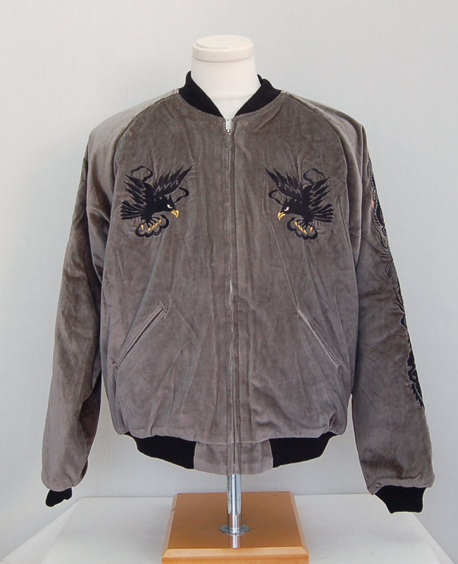 テーラー東洋では初となるグレーの別珍生地を使ったスカジャン。1950年代中期の作品をもとにしており、黒の刺繍糸を駆使して躍動感溢れる鷲が描かれている。2匹の龍が連なった袖の刺繍もヴィンテージでは珍しく、評価が高い。