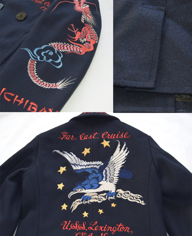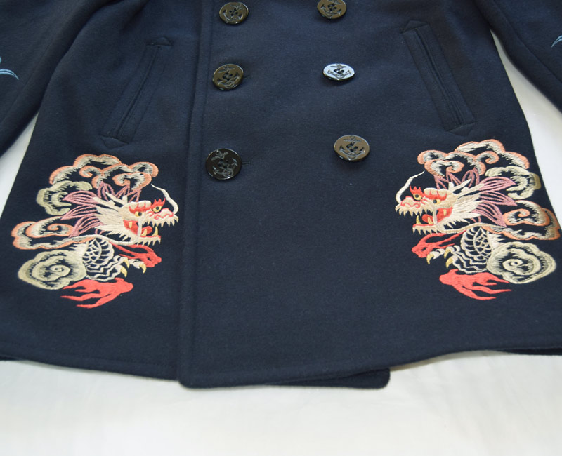 豪華でオリエンタルな和柄を刺繍で刻み込んだこのピーコートは、見る者を釘付けにする魅力と迫力があり、当時オーダーを試みた若い米兵の偉大なるアイデアとセンスにはただ脱帽するばかりである。