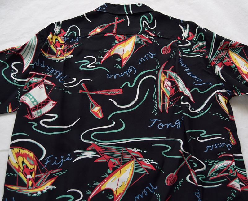 SS29205-119 :SunSurf サンサーフ 長袖シャツ 2024 L/S RAYON HAWAIIAN SHIRT SS29205 "SOUTH SEA OUTRIGGER"(119:BLACK)