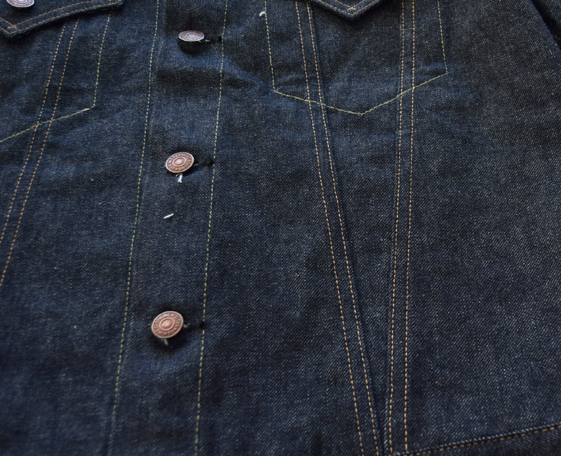Lot 221 (BIG E MODEL)のセットアップイメージのジャケットがこのサードタイプ。身体にフィットするように開発されたサードモデルも、DENIMEになくてはならないデイリーウェアです。DENIMEらしいオリジナルデニムを使用しながらも、縫製は徹底的にヴィンテージをオマージュしています。着丈の絶妙なバランスはDENIMEならではのセンスの良さが光ります。