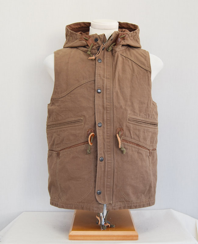 ベストというよりはスリーブレスジャケットのアビアランスにまとめたフーディー。