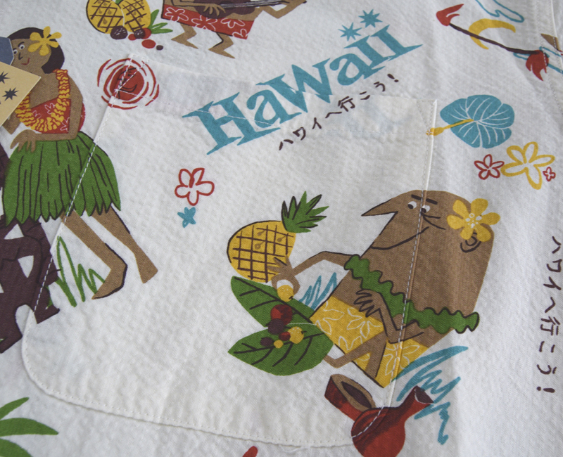 SS39537 :SUN SURF サンサーフ COTTON SEERSUCKER OPEN SHIRT TRIP TO HAWAII by 柳原良平 with MOOKIE ハワイアンシャツ