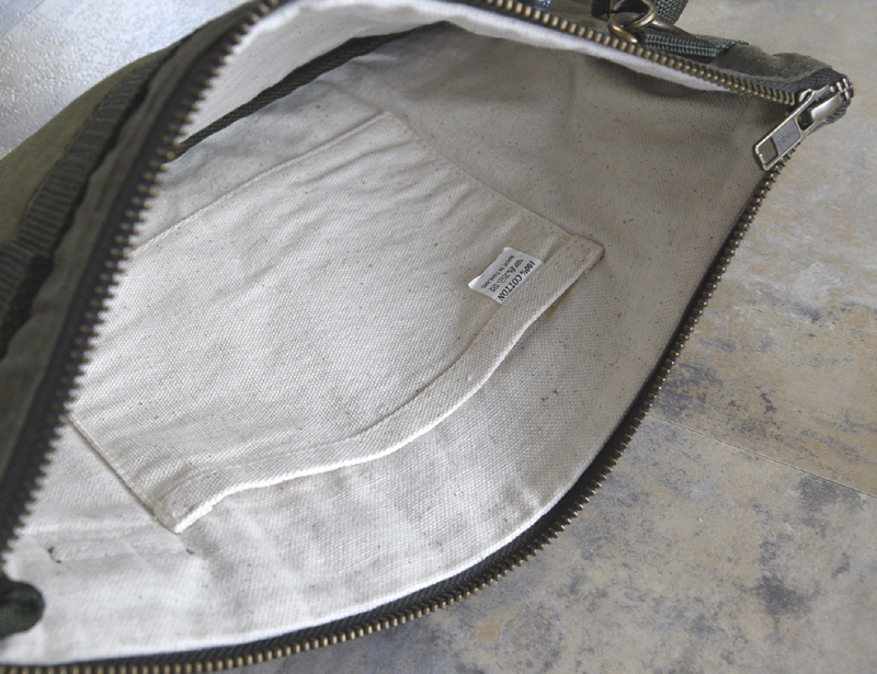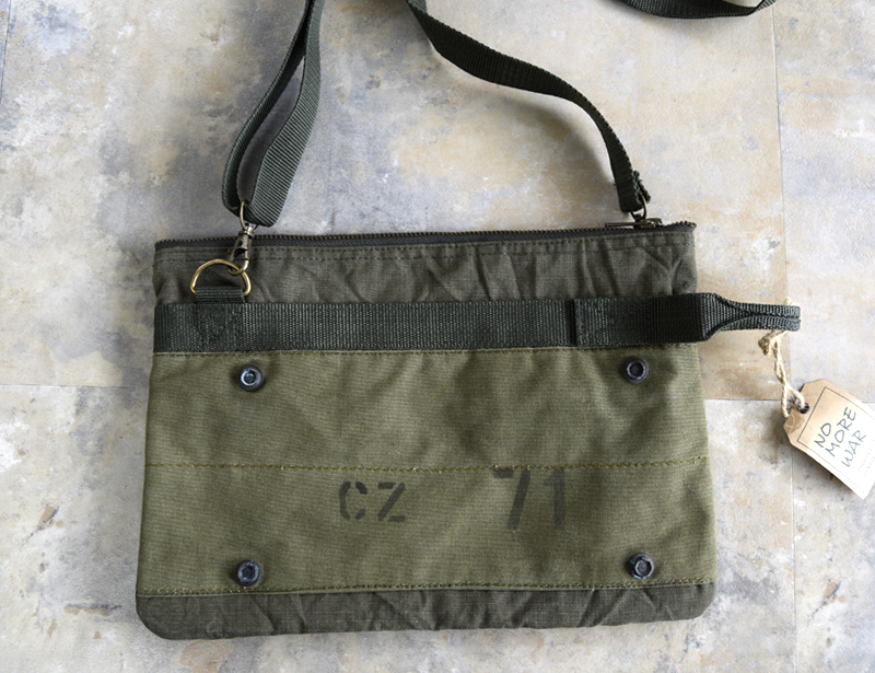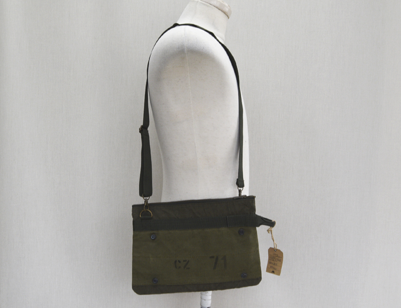 ダッフルバッグやテント、軍コートで使われてた帆布/キャンバスをリメイクしたショルダー付きクラッチ。