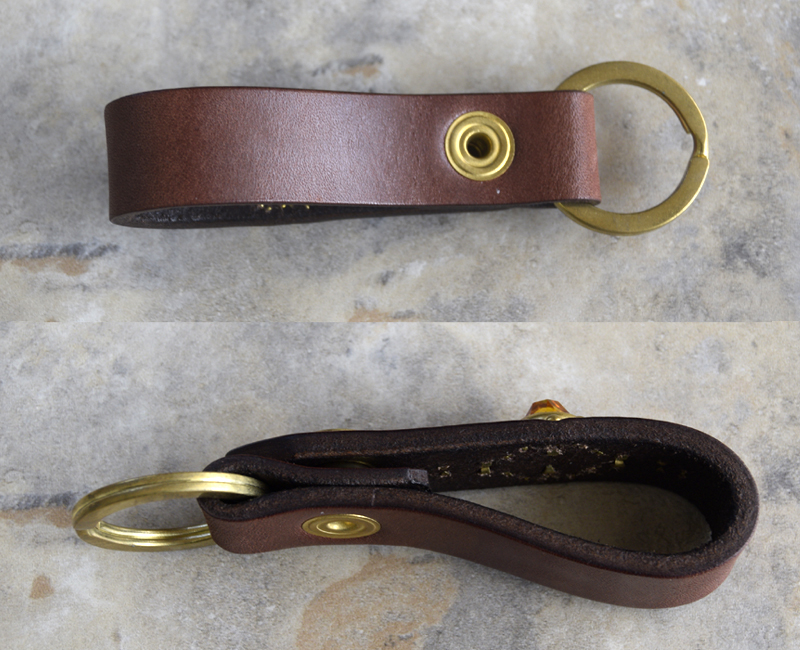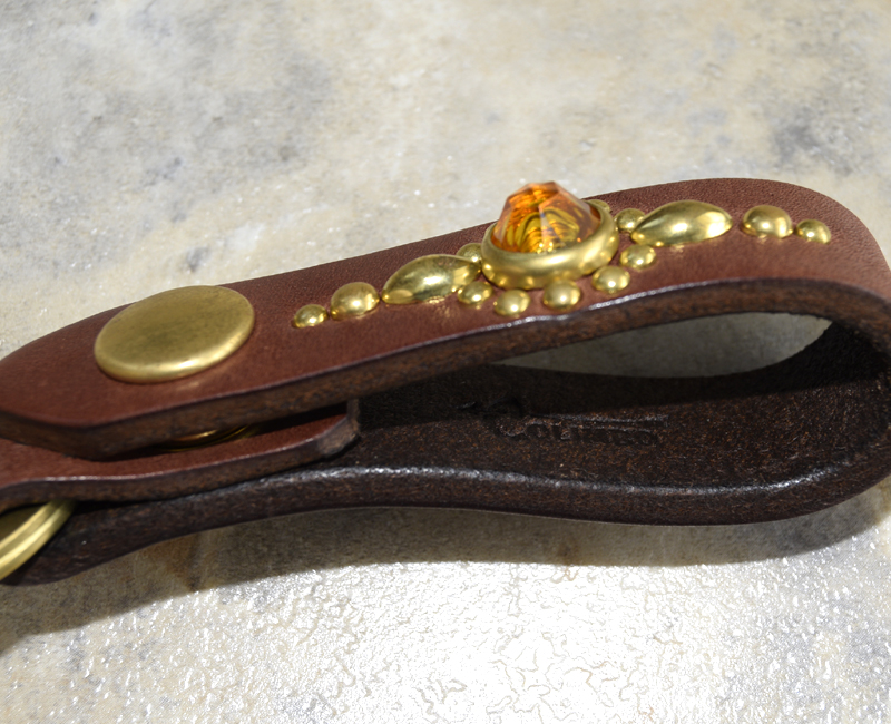 コリンボよりベルト同様の4mm厚ベンズレザーを使用しThe Standard Rivet Companyのスタッズを使用したキーリング。